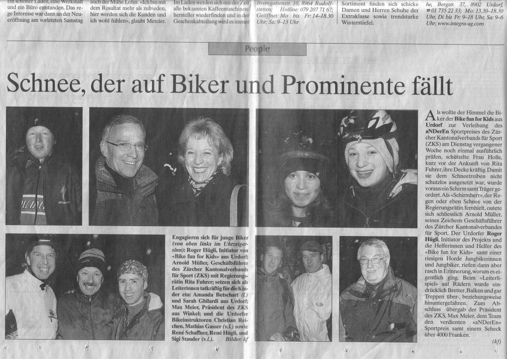 Seit 1999 führen wir jeden Montag (im Winter jeden zweiten Montag), von 18:30 – 20:00 das Biken für Kids durch. Wir (eine Gruppe von Bike-begeisterten Erwachsenen) gehen mit den Kids im Alter von 7 Jahren bis ca. 14-Jährigen in Gruppen von 5-10 Kids biken. Wir bringen Ihnen dabei das sichere Biken abseits der Strasse bei, sei es kontrolliert bergabfahren, über kleine Hindernisse springen oder Gleichgewichts-Übungen usw. Im Vordergrund soll immer der Spass bleiben, zumindest für die Kids. (Wir haben gerüchteweise schon von Müttern und Vätern gehört, die gestöhnt haben sollen angesichts des von oben bis unten dreckigen Kindes, den Pfützen im Gang und dem Velo vor der Tür!). Wer sich interessiert soll doch am besten im Bike Shop Chlösterli vorbeikommen.